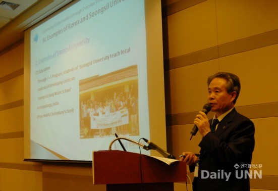 특히 김 총장은 “숭실대는 봉사 활동 촉진 프로그램인 ‘7+1 프로그램을’ 실시하고 있다”며 “이 프로그램은 8학기 가운데 1학기는 해외 봉사와 해외 연수로 학점을 대체할 수 있는 제도”라고 소개했다.