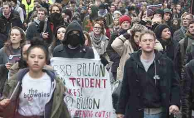 영국 전국대학생연합회는 지난 9월 학기부터 대학 등록금이 3배 오르고, 대학생을 둔 가정에 대한 교육비 보조금이 삭감된 것에 항의하며 이날 시위를 주최했다.