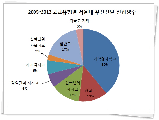 [한국대학신문 이우희 기자] 서울대가 수시 우선선발 제도를 자연계열 최상위권 인재 선점에 활용해온 것으로 드러났다. 1일 국회 교육문화체육관광위원회 박성호 새누리당 의원이 서울대로부터 제출받아 제공한 ‘2005년 이후 우선선발 신입생 현황’을 살펴보면, 과학고와 과학영재학교 출신의 비율이 52%에 달했다.