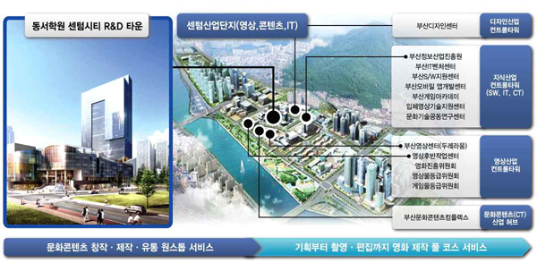 산학협력에 한층 유리하게 변화하는 캠퍼스 환경 역시 강점이다. 부산 도심의 유일한 산업단지인 해운대 센텀시티에 위치한 동서대 R&D타운은 영화영상·디자인·IT융합·디지털콘텐츠 등 4대 특성화 분야의 산학협력 코어 역할을 수행한다. R&D타운 반경 500m 안에는 700여 업체가 입주해있어 밀접한 교류가 가능하다. 여기에는 동서대 특성화 방향과 부합하는 영화의 전당, 부산정보산업진흥원, 디자인센터, ‘두레라움(옛 부산영상센터)’, 영화진흥위원회과 영상물등급위원회가 자리했다.