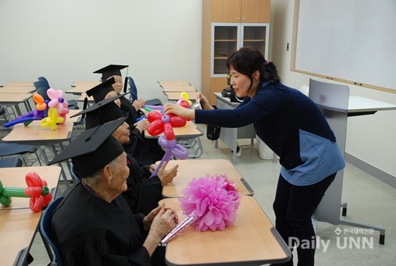 아주자동차대학 학생과 교직원은 대학생들처럼 강의를 듣고 캠퍼스도 거닐고 싶다는 어르신들의 소박한 꿈을 이뤄드리기 위해 여러 가지 활동을 펼쳤다. 이날 할머니, 할아버지는 캠퍼스를 둘러보는 한편 손자 같은 대학생들이 공부하는 강의실에 앉아 강의를 들었다. 학사모와 학사가운을 입고 사진을 찍기도 했다.
