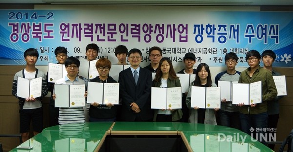 이번 장학금 수여는 원자력인력양성을 위한 것으로, 동국대 경주캠퍼스는 2014년부터 2017년까지 경상북도가 추진 중인 원자력 클러스터 조성사업 중 하나인 원자력인력양성사업 2단계 사업에 선정되어 1, 2단계 포함 9억원의 사업비를 지원받고 있다.