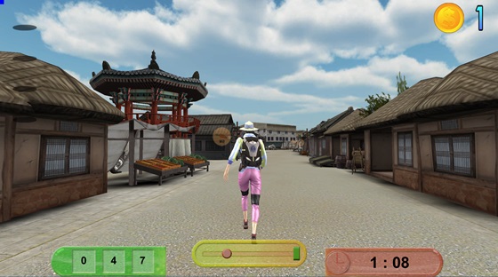 ‘팔도강산’ 게임은 실내에서 모니터를 보고 걸으면서 시장을 돌아다니며 특정 음식물을 구입하는 걷기 운동 게임이다. 키넥트를 사용함으로써 동작인식만으로 조작이 가능하며, 점수와 랭킹으로 매번 자기의 게임 점수를 통해 신체 정신 기능의 향상을 확인할 수 있다.
