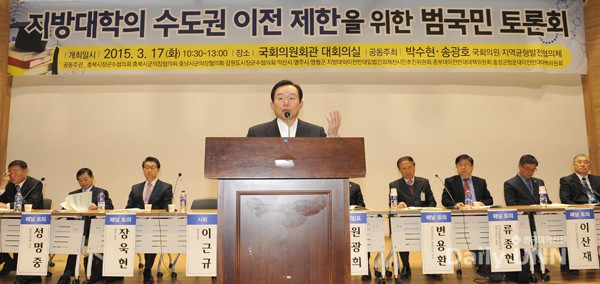 이인제 새누리당 최고위원과 박수현 새정치민주연합 의원, 이근교 제천시장 등은 지방대의 수도권 이전은 국토균형개발을 황폐화 시키며 지방의 생존을 위협한다고 목소리를 높였다. 지방대 수도권 이전의 근거법인 ‘주한미군 공여구역주변지역 등 지원 특별법(이하 특별법)’을 악법이라 규정하며 수도권 이전을 금지한 개정안의 국회 통과를 촉구했다. 박수현 의원이 2013년, 송광호 새누리당 의원이 2014년 개정안을 대표 발의했으며 이 법안은 현재 국회에 계류 중이다.