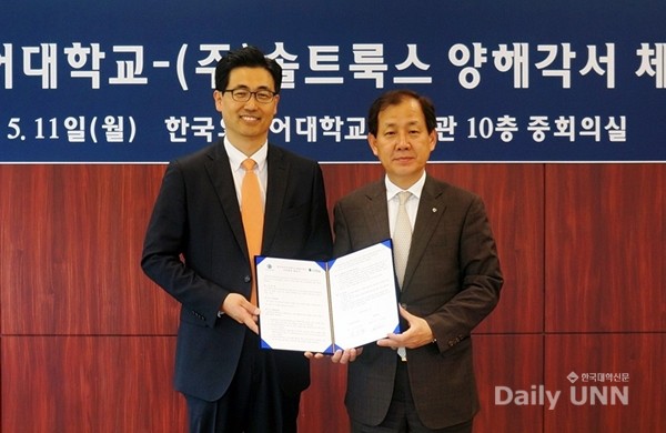 한국외대는 솔트룩스의 빅데이터와 기계학습에 기반해 다국어 자연어 처리 분야 연구 협력을 진행하며 솔트룩스는 자연어 처리 분야의 전문 인력 양성에도 힘쓰기로 합의했다.