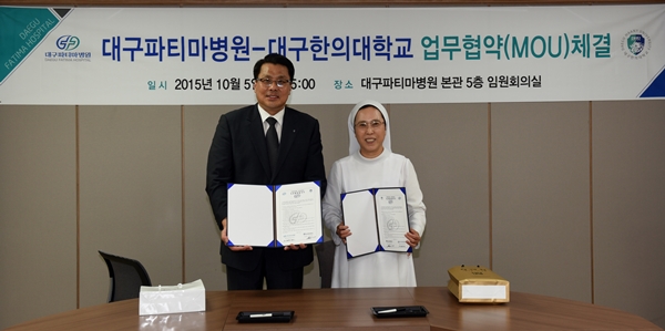 [한국대학신문 이우희 기자] 대구한의대(총장 변창훈)가 지난 5일 대구파티마병원(원장 박진미)과 의료 분야의 교류 활성화와 우수인재 양성을 위한 상호협력 협약을 체결했다고 6일 밝혔다.
