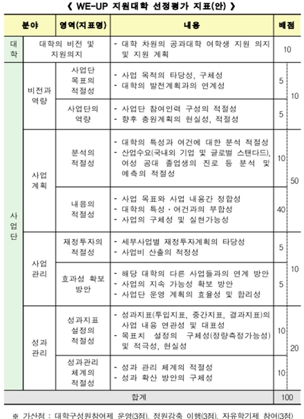 WE-UP 사업 공고…여자대학 별도 패널 마련·자율공모