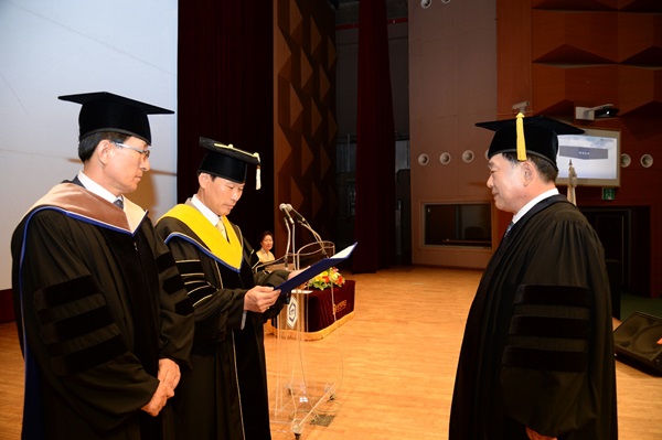 순천대는 8일 교내 70주년기념관 우석홀에서 학위수여식을 열고 조충훈 시장에게 명예 행정학 박사학위를 수여했다고 밝혔다. 이날 행사에는 박진성 순천대 총장을 비롯해 장만채 전남교육감과 김병권 순천시의회 의장, 안세찬 순천대 총동창회장 등 400명이 참석했다.