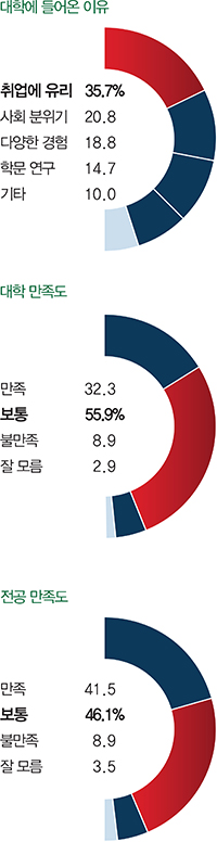 대학 만족도 32.3%, 전공 만족도 41.5%