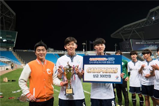 [한국대학신문 손현경 기자] 대학생 정보 앱 ‘아이캠펑’을 운영하는 ㈜캠펑(대표 서지원)과 프로축구 구단 인천유나이티드(대표 박영복)이 공동으로 개최한 제1회 캠펑스컵 아마추어 전국 대학생 축구대회서 대구교대가 29일 우승을 차지했다.