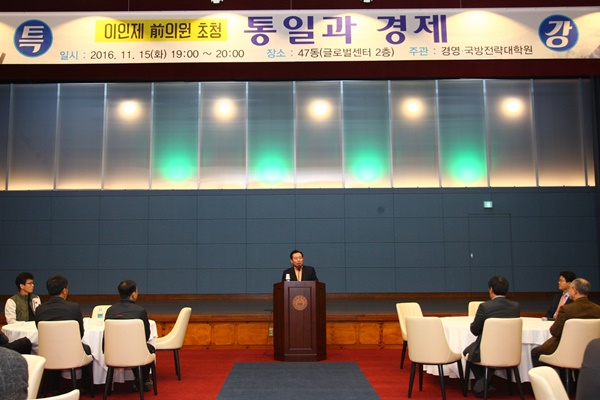 한남글로벌센터 2층 무어아트홀에서 열린 특강은 ‘통일과 경제’라는 주제로 1시간 동안 진행됐으며 특강 이후 질의응답이 이어졌다.