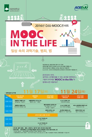 ACE사업의 일환으로 진행되는 이번 MOOC 콘서트는 지식 공유를 통한 사회공헌을 위한 목적으로 지난 2014년 OCW 콘서트를 통해 처음 마련됐다. 인문학을 비롯해 한의학 및 자연과학과 예술 등 일상생활과 밀접한 주제와 관련해 운영됐다.
