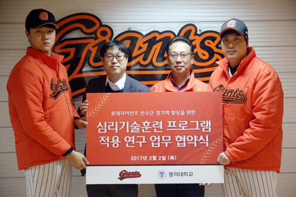 [한국대학신문 이연희 기자]신정택 동의대 체육학과 교수가 프로야구팀 롯데 자이언츠와 ‘선수의 심리기술 및 경기력 향상을 위한 심리 상담 지원’이라는 연구 용역을 체결하고 2017년 롯데 자이언츠 선수단의 멘탈을 책임진다.