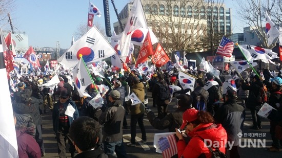 오전 10시에 집회 현장에 도착했다고 밝힌 김수빈(28)씨도 “대통령이 누명을 썼다. 증거가 없이 탄핵하는 것은 옳지 않다”고 강조했다. 탄핵 결정에 대해서는 “각하가 나올 것이다. 정확한 증거가 없기 때문이다”며 “이 곳에 온 것 자체가 속상하다. 각하되지 않는 건 말도 안 된다”고 말했다. 동갑내기 친구들이 어떻게 생각하는지 묻자 “이해는 되지만 속고 있다고 생각한다”고 밝혔다.