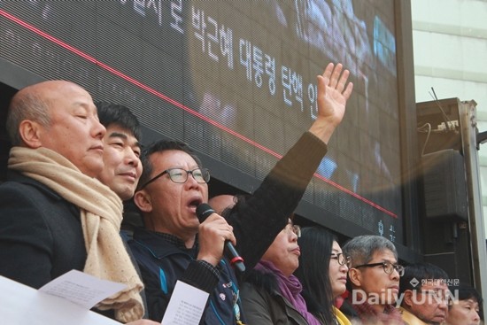 [한국대학신문 구무서 기자] 10일 박근혜 대통령 탄핵 선고에서 만장일치 인용 판결이 나온 가운데 박근혜정권퇴진 비상국민행동(퇴진행동)은 기자회견을 열고 민주주의의 승리를 외쳤다.