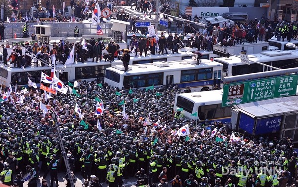 [한국대학신문 김의진·김정현 ·장현민 기자] 헌법재판소(소장 권한대행 이정미) 대통령 탄핵 인용이 발표되자 ‘대통령 탄핵 기각을 위한 국민총궐기운동본부(탄기국)’ 측 반응이 과열되고 있다. 탄기국 집회 일부 참가자들은 기자나 시민을 폭행하기도 했다.