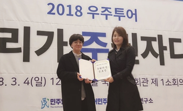 또한 자신이 지역의 초‧중‧고생을 대상으로 진행하고 있는 ‘민주시민교육’의 내용을 중심으로 바람직한 개헌 방향을 제시해 심사위원들의 많은 공감을 이끌어냈다는 평가를 받았다.