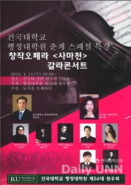[한국대학신문 이하은 기자] 건국대 행정대학원(원장 장성호)은 오는 11일 서울 광진구 상허연구관 123호에서 ‘창작 오페라 <사마천> 갈라콘서트’를 개최한다.