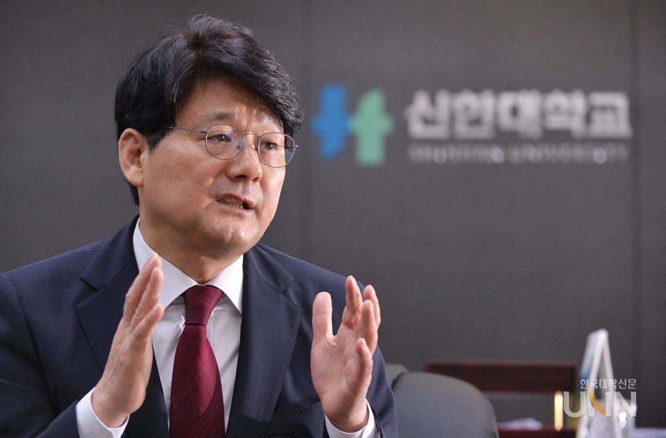 “현재와 미래가 어느 대학보다 여러 측면에서 경쟁력 있다. 신한대는 4년제 종합대학 출범할 때 구조조정을 하며 입학정원 절반을 감축했다. 회사조차 구조조정 어렵지 않나. 대학에서 신입생 정원 50%를 감축하고, 구조조정하면서 종합대학 출범한 것은 놀라운 일이다. 교수, 직원, 학생들이 이런 힘든 과정을 이미 5년 전부터 해왔다. 그 바탕으로 인재양성을 위한 프로그램을 실천해나가고 있는 중이다. 그런 측면에서 우리 학교는 정부에서 요구하는 구조조정을 이미 실천ㆍ실현했다. 또한, 신한대는 경기북부 300만 지역의 거점중심대학이다. 경기북부의 유일한 거점대학으로 지역적으로 이점도 좋다. 지역과 산학 프로젝트를 준비하고 있고, 수행하고 있다.”
