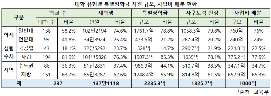 4년제 760억원, 전문대 240억원 교부, 전문대학 2개교 ‘탈락’