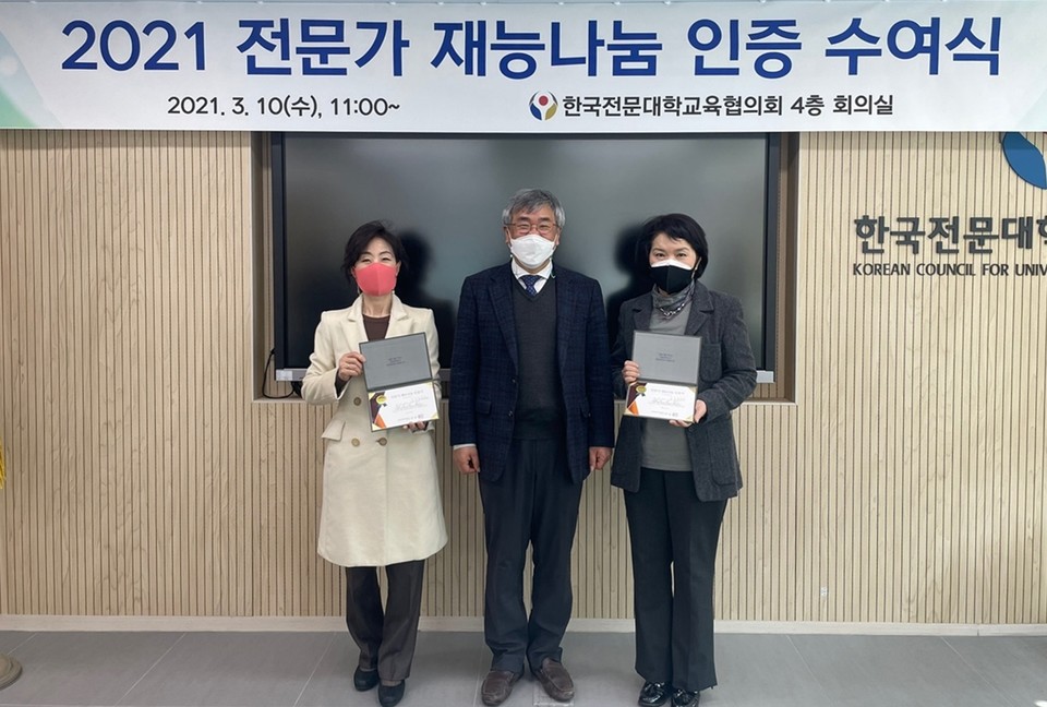 정수아 오산대 교수 또한 “스스로 할 수 있는 일을 도움이 필요한 곳에 조금씩 도와준 것뿐인데 재능나눔으로까지 부각된 것 같아 부담스러운 측면은 있지만 인증서까지 수여해 준 전문대교협에 감사한 마음을 표한다”고 소감을 전했다.