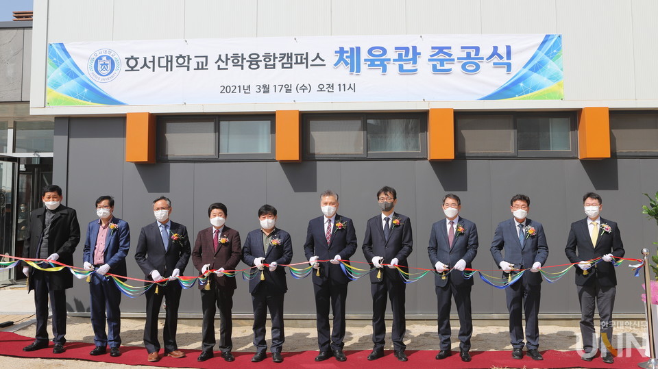 [한국대학신문 이원지 기자] 호서대학교(총장 김대현)는 당진 산학융합캠퍼스에 학생들의 생활체육 수요를 충족시키고 지역사회 시설 제공을 위한 ‘호서대학교 산학융합캠퍼스 다목적체육관’을 건립하고 17일 준공식을 가졌다.