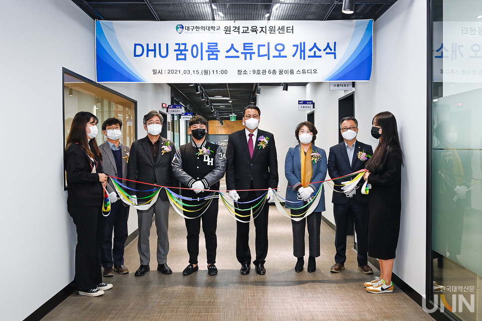 [한국대학신문 이원지 기자] 대구한의대학교(총장 변창훈) 원격교육지원센터는 15일 학술정보관 6층에서 비대면 교육 활성화를 위한 ‘DHU 꿈이룸 스튜디오 개소식’을 가졌다고 18일 밝혔다.