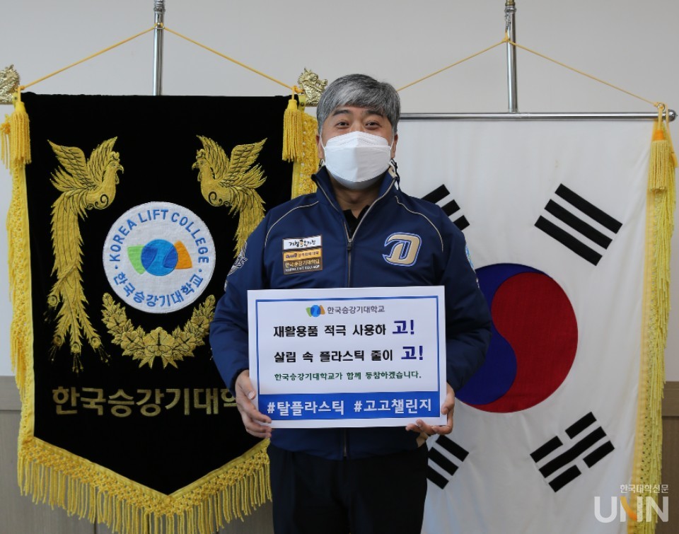 [한국대학신문 이원지 기자] 이현석 한국승강기대학교 총장이 13일 생활 속 탈(脫) 플라스틱 ‘고고챌린지’에 동참했다.
