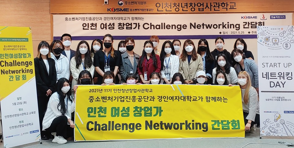 25일 진행된 행사는 경인여대와 중소벤처기업진흥공단 인천지역본부가 3월에 체결한 ‘취업 및 창업지원을 위한 업무협약’의 후속조치다. 경인여대 창업동아리 학생과 인천 청년창업사관학교 출신 여성 CEO 간의 네트워킹을 통해 예비 여성 창업자에게는 사업 성공 노하우 공유 및 기업가 정신 함양 기회를 갖고 기업에는 각계각층의 후배들과의 연결 및 사업화 아이디어 확대 계기를 제공하기 위해 마련됐다.