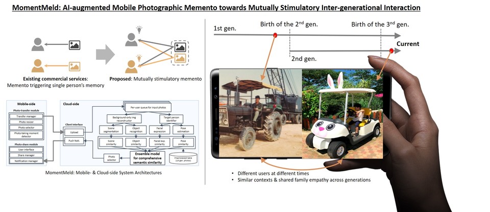 공동 연구팀이 개발한 모멘트멜드는 우리 일상에서 반복적으로 스쳐 가는 단편적인 순간들을 포착해 노년과 자녀 세대 간 양방향 소통의 단초를 제공해주는 AI 기반 모바일-클라우드 복합 서비스다.