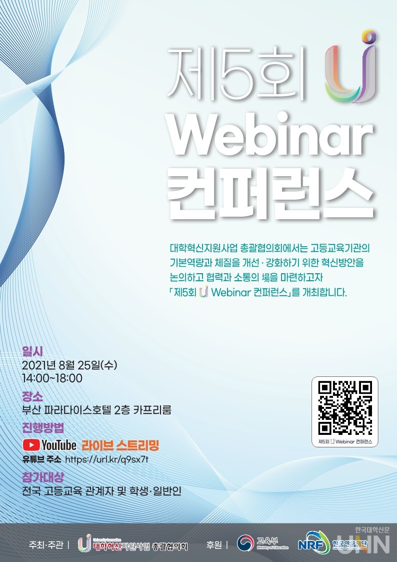 [한국대학신문 허정윤 기자] 대학이 급변하는 사회 변화를 어떻게 능동적으로 대응하고 혁신해야 할지 고민하는 다섯 번째 소통의 장이 열린다. ‘제5회 대학혁신지원사업 웨비나(Webinar) 콘퍼런스’에서는 위상을 높여가고 있는 ‘K-EDU’ 대한 국제화 전략을 알아보고 한국 대학들이 글로벌 경쟁력을 강화할 방법이 무엇인지 모색한다.