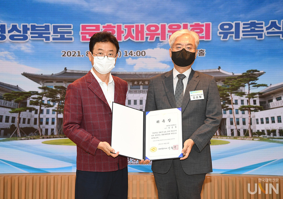 [한국대학신문 이원지 기자] 대구한의대학교(총장 변창훈)는 김종철 기초교양대학 교수가 임기 2년의 경상북도 문화재위원회 위원으로 선임돼 23일 경상북도청 안민관 1층 다목적홀에서 위촉식이 진행됐다고 밝혔다.