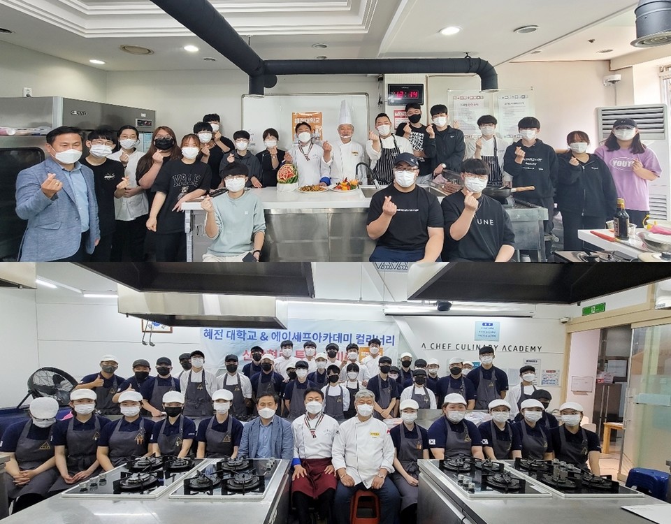 [한국대학신문 박종민 기자] 혜전대학교(총장 이혜숙)는 호텔조리계열 서양식전공장 최태호 교수와 중식전공장 이명철 교수가 인천시 에이세프직업전문학교, 용인시 한쿡외식문화학원에서 고등학생들을 대상으로 16일 재능기부 진로특강을 진행했다고 전했다.