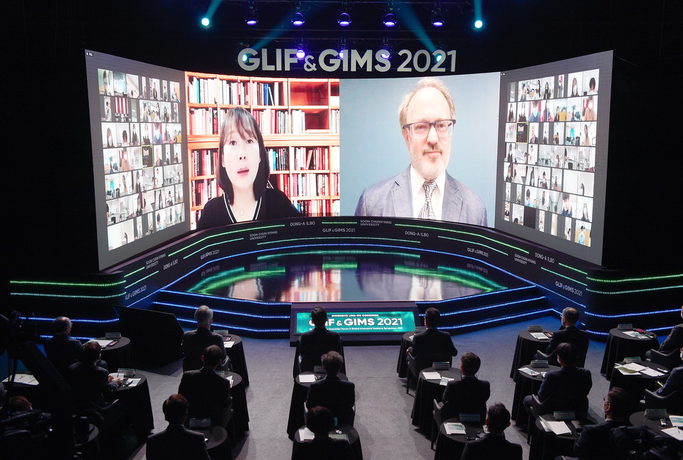 ‘4차 산업시대, 세계 대학교육을 뒤집다’라는 주제로 진행된 글로벌 교육 혁신 포럼 ‘GLIF 2021’과 글로벌 혁신의료 심포지엄 ‘GIMS 2021’은 ‘디지털 네이티브’라는 개념을 만들어낸 세계적인 미래교육학자 마크 프렌스키(Marc Prensky)를 비롯해 국내외 최고 석학들이 참여해 토론과 강연을 펼쳤다.