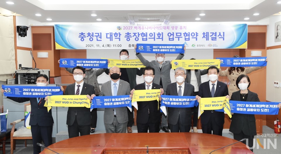 [한국대학신문 이원지 기자] 청운대학교(총장 이우종)는 4일, (사)2027하계유니버시아드대회 충청권공동유치위원회‧충청권대학 총장협의회와 업무협약식을 가졌다.