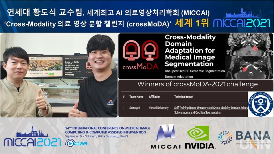 [한국대학신문 이원지 기자] 황도식 연세대학교(총장 서승환) 전기전자공학과 교수 연구팀이 의료 인공지능(AI) 분야 세계 최고 권위를 자랑하는 국제의료영상처리학회(MICCAI)가 개최한 의료 인공지능 경진대회 ‘Cross-Modality Domain Adaptation for Medical Image Segmentation (crossMoDA) Challenge’에서 세계 1위를 차지했다.