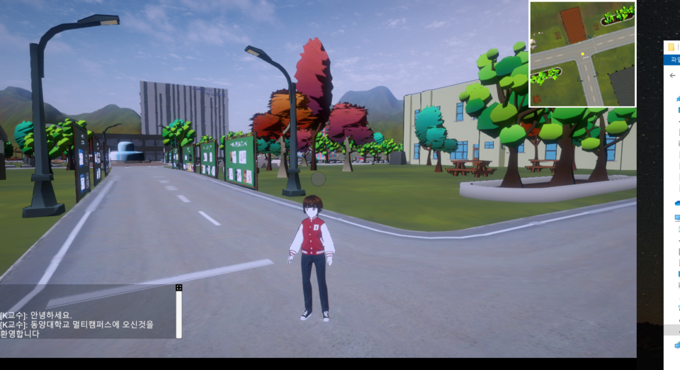 ‘멀티(MMO; multi massively online)캠퍼스’는 동두천캠퍼스를 MZ세대에 친근한 카툰스타일로 실제 캠퍼스와 유사하게 구현됐다. 최다 1000명까지 동시 접속이 가능하다.