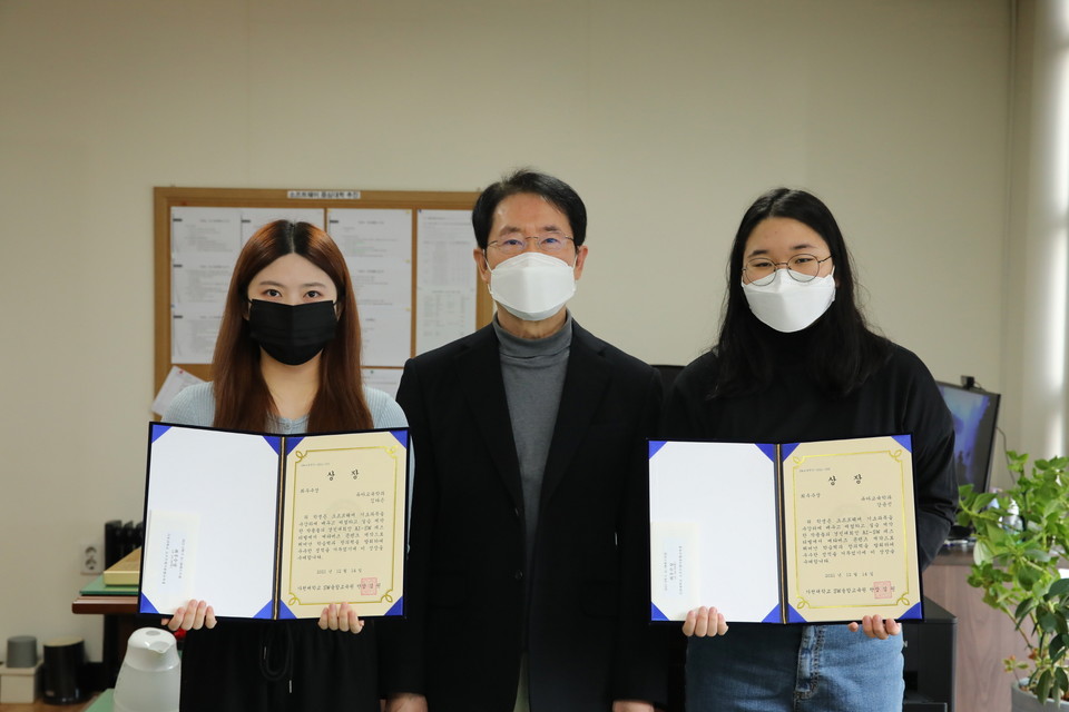 1차 심사를 거쳐 2차 결선에 진출한 7개 팀 중 유아교육학과(강윤진·공이준·김다은·김민주) 학생 팀이 ‘메타버스, 새로운 시대를 열다: 놀러와요 사이버 가천대’를 주제로 최우수상을 받았다. 이들은 게더타운을 활용해 무한대상, 바람개비동산, 벚꽃길, 광장 등 가천대와 대학 주변 음식점을 구현했다. 유아교육학과가 활용하는 강의실과 학과실도 구현돼 있어 다른 학과 학생들이 유아교육학과 관련 영상이나 교재를 살펴보거나 동영상 강의, 그룹별 학습 등에 참여할 수 있도록 했다.