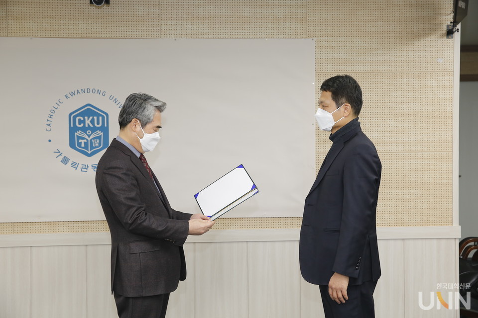 [한국대학신문 조영은 기자] 가톨릭관동대학교(총장 김덕현)는 마리아관 컨버전스룸에서 ‘2021학년도 연구업적 우수 교원 시상식’을 18일 개최했다.