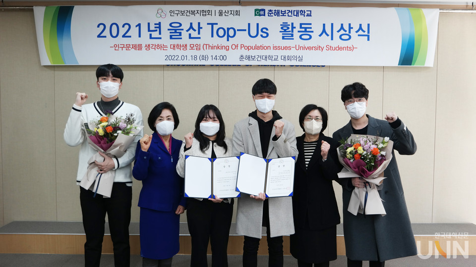 [한국대학신문 이원지 기자] 춘해보건대학교(총장 김희진)은 도생관 대회의실에서 ‘2021년 울산 Top-Us 활동 시상식’을 18일 개최했다.
