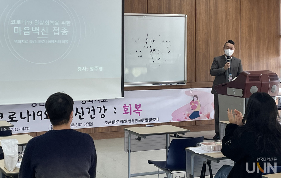 [한국대학신문 이원지 기자] 조선대학교(총장 민영돈) 원스톱학생상담센터가 코로나19 장기화로 대학 생활 적응에 어려움을 겪고 있는 학생들의 마음을 위로하기 위한 특별프로그램이 큰 호응을 얻고 있다.