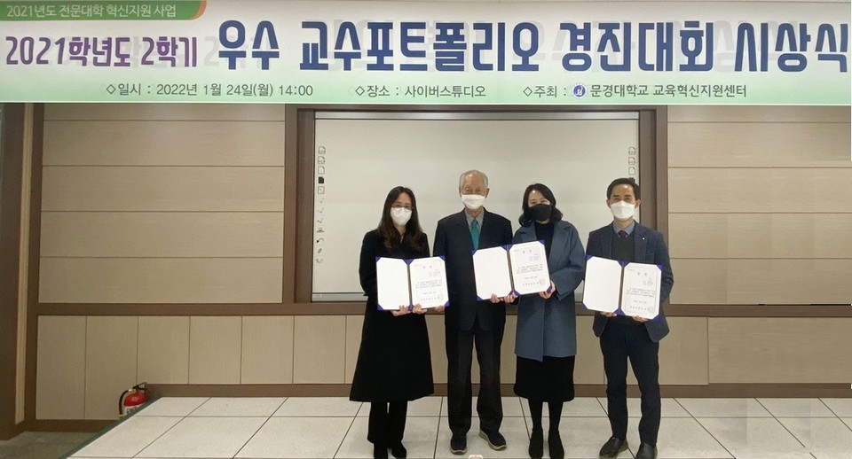 [한국대학신문 조영은 기자] 문경대학교(총장 신영국) 교육혁신지원센터가 전문대학 혁신지원사업 일환으로 ‘2021학년도 2학기 우수교수 포트폴리오 경진대회’를 진행했다고 25일 전했다.