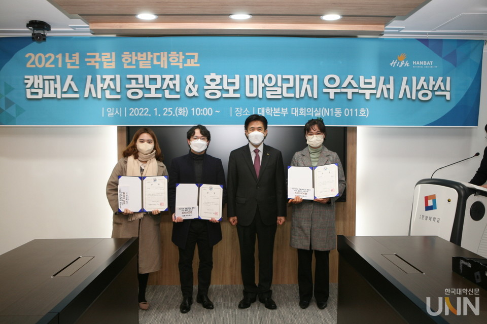 [한국대학신문 조영은 기자] 한밭대학교(총장 최병욱)는 교내 대학본부에서 우수 홍보콘텐츠 발굴에 기여한 공로자를 포상하고 격려하는 ‘캠퍼스 사진 공모전’ 및 ‘홍보마일리지 우수부서’ 시상식을 25일 진행했다.