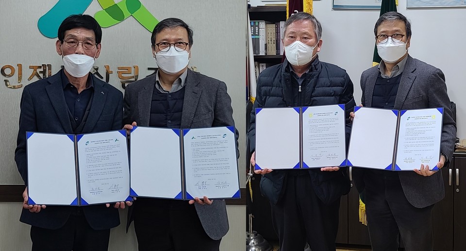 [한국대학신문 조영은 기자] 강원대학교(총장 김헌영) 농촌사회교육원은 인제군 산림조합(조합장 이종욱), 인제군 축산업협동조합(조합장 이택열)과 ‘교류협력에 관한 양해각서(MOU)’를 21일 체결했다고 전했다.