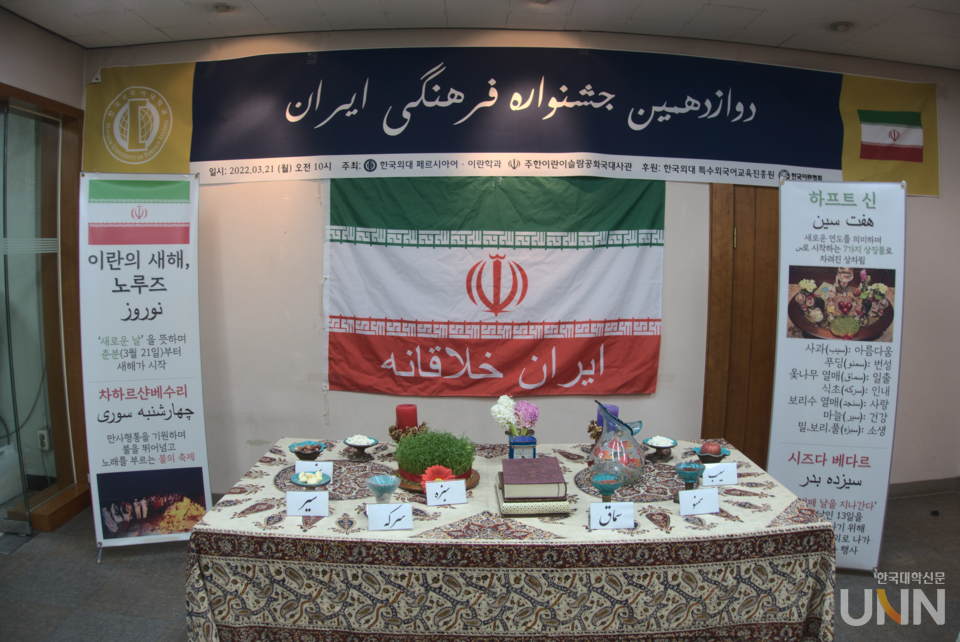 한국외대 특수외국어교육진흥원과 한국이란협회가 후원한 ‘제12회 이란문화제’는 코로나19 상황을 고려해 온라인으로 개최됐다. 문화제의 취지를 살리기 위해 오프라인으로 포토존을 운영하는 등 문화제에 참가한 학생들이 이란 노루즈 상차림을 비롯한 이란 문화를 직접 경험할 수 있도록 했다.
