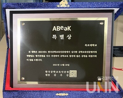 [한국대학신문 이원지 기자] 목포대학교(총장 박민서)가 (사)한국공학교육인증원의 2021년도 공학교육 인증평가 특별상을 받았다고 30일 전했다.