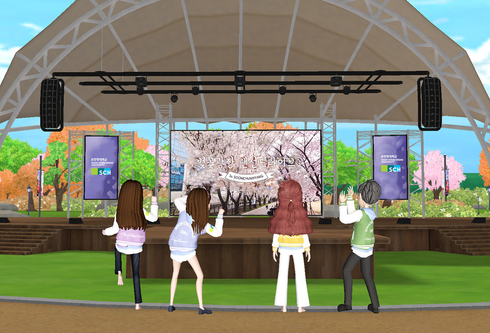 올 2월 버츄얼 공간에 구축된 ‘순천향 메타버스 캠퍼스’에서도 축제가 동시에 진행된다. 가상공간 맵 내 캠퍼스에서는 ‘향운(香雲)로 벚꽃길’과 가로등 배너가 구현되고 공연장에서는 캠퍼스 벚꽃 영상이 송출된다.
