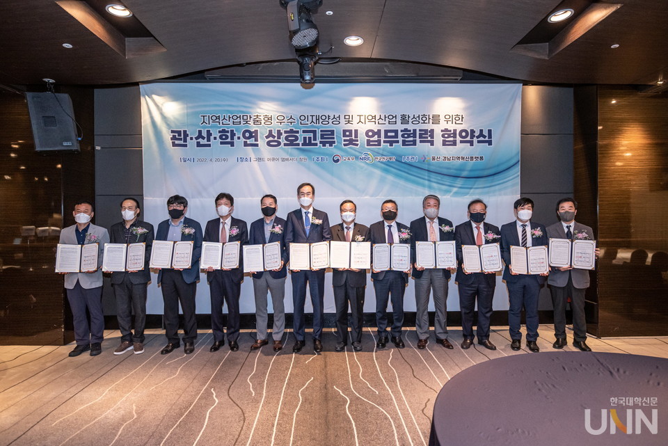 협약식 2부는 울산·경남 지역인재양성 및 산학공동교육 활성화를 위해 대학과 지역청년기업 간 상호교류와 업무협력을 목적으로 진행됐다. △지역산업체 맞춤형 지역청년인재 양성 관련 산학공동교육 개발 및 운영 △산학공동교육 활성화 시설 및 실험·실습 장비의 이용 △기관의 글로벌 역량강화를 위한 글로벌 산학협력 활동 공동기획·추진 및 글로벌 자원 활용 △산학공동교육, 지역우수인재 채용, 마케팅 및 학생모집 등 유기적 산학협력을 위한 취·창업 생태계 조성 △유기적 산학협력 파트너십 구축 등 지역인재양성·산학공동교육 활성화에 뜻을 모았다.