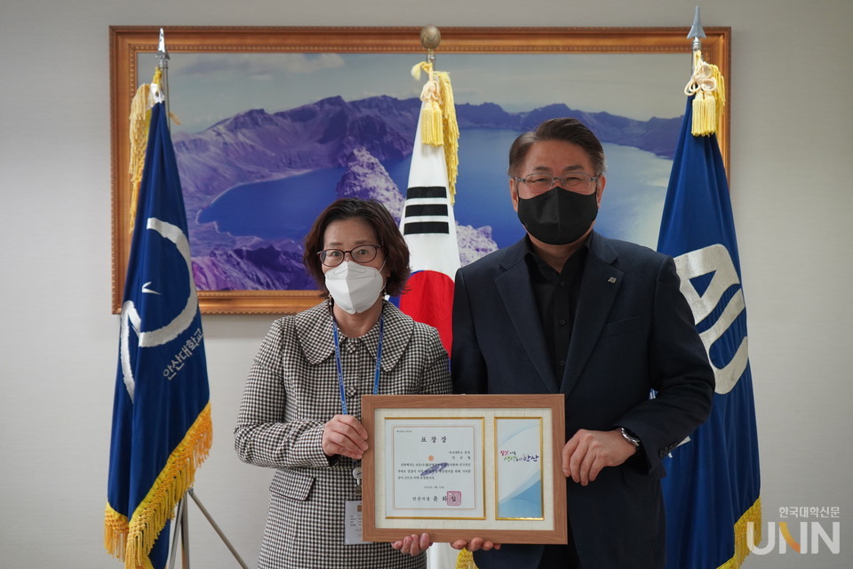 [한국대학신문 이원지 기자] 안규철 안산대학교 총장이 25일 안산시로부터 코로나19 선별진료소 운영지원 공로를 인정받아 표창장을 수여 받았다.