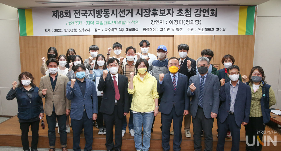 [한국대학신문 이원지 기자] 인천대학교(총장 박종태) 전체교수회는 정의당 이정미 인천시장 후보를 초청해 학생‧교직원을 대상으로 인천대 교수회관 대회의실에서 강연회를 16일 개최했다.